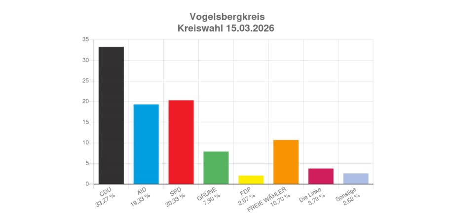 Vogelsbergkreis. Der Kreiswahlausschuss hat getagt, das amtliche Endergebnis der Kommunalwahl steht fest: Die CDU geht mit 33,27 Prozent als stärkste Partei aus der Wahl hervor und bekommt damit 20 der insgesamt 61 Sitze im Kreistag.