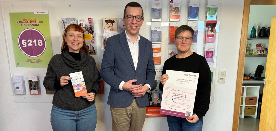 Vogelsbergkreis. „Sie leisten hier eine sehr wichtige Arbeit, die wir als Kreis auch weiterhin gern unterstützen werden“, betonte der Erste Kreisbeigeordnete und Sozialdezernent Patrick Krug bei seinem Besuch der Beratungsstelle von pro familia in Alsfeld. Krug tauschte sich vor Ort mit der Beratungsstellenleiterin Maren Colton und Mitarbeiterin Sophie Jacob aus und erhielt einen Einblick in die wertvolle Arbeit, die dort geleistet wird.